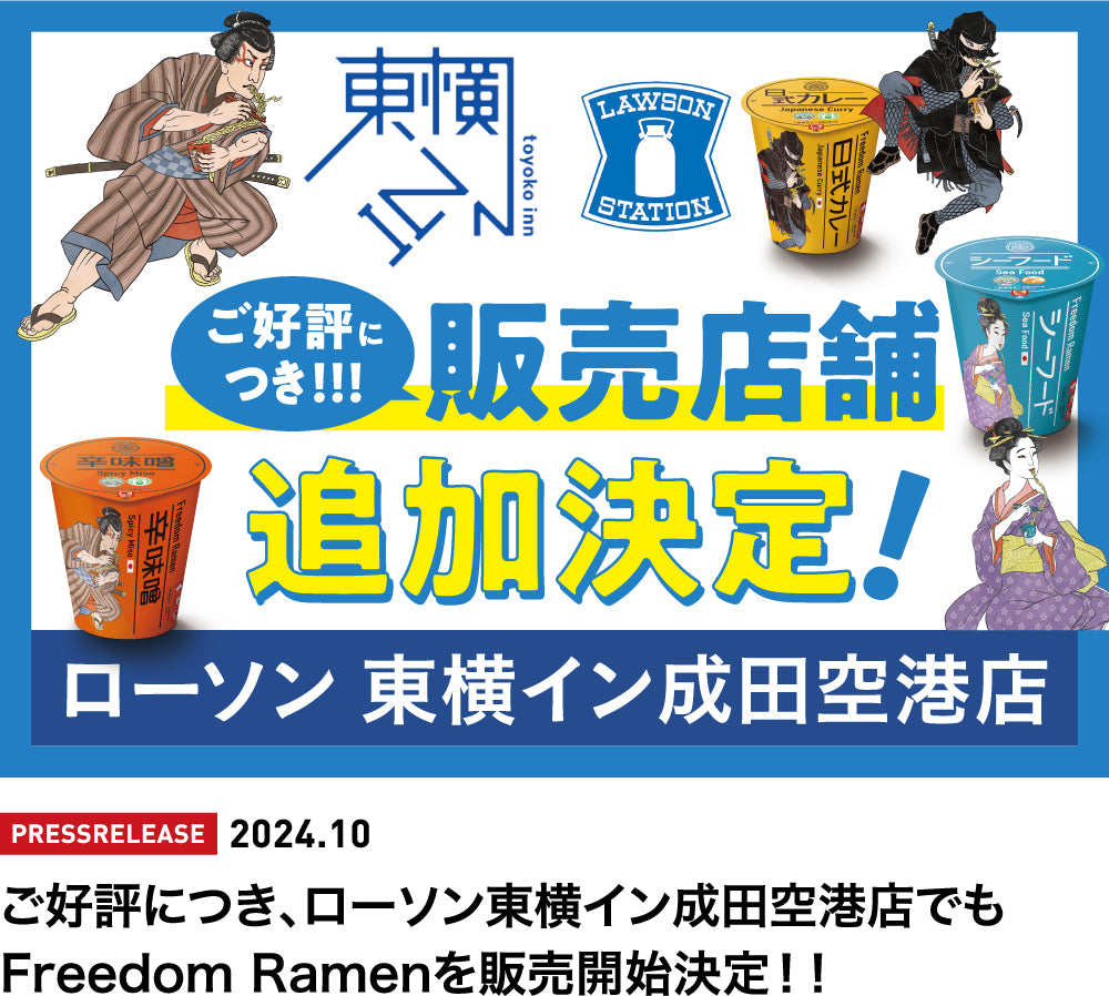 日本一の客室数。快適な客室とサービスでお客様のスタートを応援する「東横イン成田空港店」。ホテル館内のローソンにて「Freedom Ramen」を販売開始しました。